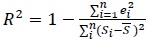 Where n is the total count of measurements, ei is the differences between actual (measured) values and predicted settlement values, Si is actual settlement values, and