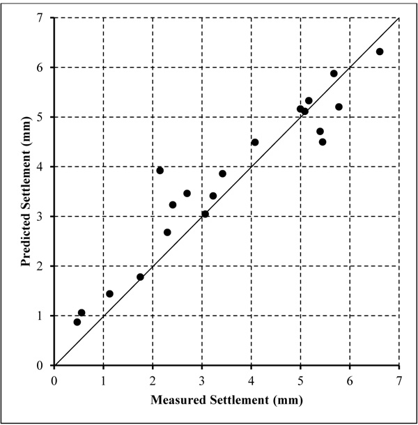 Despite the above-mentioned shortcomings, the results of this research point out that ANNs have several significant powerful and practical benefits that make them a valuable tool in predicting the settlement of shallow foundations on cohesionless soils. It should be noted that the developed formulas can only be used for similar type of soils.