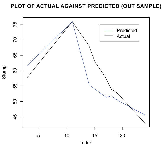 The neural network model forecasted the compressive strength for training, testing and validation with predicted errors of 0.802 MPa and 1.380 MPa. The model over forecasted the compressive strength averagely by 0.644 MPa and 1.905 MPa. The forecasted compressive strength changed averagely by 2.328% and 3.946%. The average difference between the predicted and experimental values was 0.588 MPa and 1.050 MPa. The coefficients of determination were 0.961 and 0.905. The MLR model predicted the slump with predictive error values of 6.634 mm and 8.374 mm. The predicted slump deviated on average by 3.633% and 8.034%. The residual error was 3.075 on 12 degrees of freedom. The multiple R2 and adjusted R2 were 0.9336 and 0.9115. The P-value was found to be 5.639e-07.