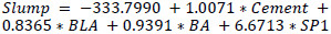 This research focuses on the compressive strength and slump based on Artificial Neural Network (ANN) and Multiple Linear Regression (MLR) models for forecasting of compressive strength and slump value for concrete by blending BLA and BA as partial supplementary cement materials accordingly.