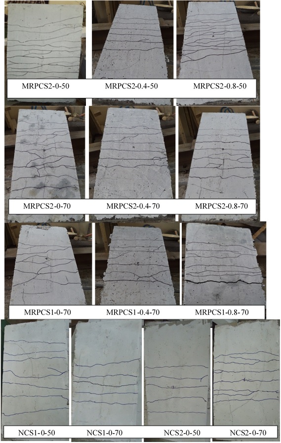 7. Inclusion of the steel fiber in MRPC slabs enhanced their stiffness, reduced crack width and its numbers, reduced the rate of crack propagation as well as preserved the whole section together after reaching the failure. Most of the steel fibers were observed to pull out the cement matrix rather than snap.