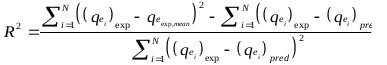 Where, Ce (mg/L) is the final concentration of ions in solution, qs (mg/g) is the equilibrium sorption capacity, αs is the affinity constant for adsorption, and ns is the index of heterogeneity.