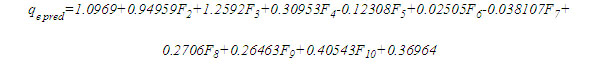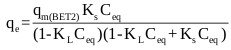 Where, qmBET2 (mg/g) is the amount of adsorbate corresponding to complete monolayer adsorption, KL (mg/L)-1 is the equilibrium constant of adsorption for upper layers in BET isotherm, KS (mg/L)-1 is the equilibrium constant of adsorption for the first layer in Langmuir and BET isotherms and Ceq (mg/L) is the equilibrium liquid phase concentration.