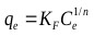 Where, KF is the Freundlich constant, and n is the Freundlich exponent.