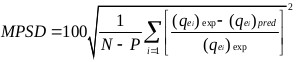 Marquardt’s Percent Standard Deviation (MPSD) where, N is the number of experimental points and P is the number of parameters in the regression model.