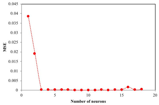 An artificial neural network (ANN) attempts to mimic how a biological system functions and how they can be utilized for their novel architecture to solve highly complex, undefined and nonlinear mathematical problems [71]. In this study, the multilayer feed-forward neural network trained by backpropagation is adopted. This ANN architecture is formed by the number of layers, number of neurons in different layers, transfer function and initial weights which interconnect each layer. According to Lek and Guegan [72], the non-linear elements (neurons) are arranged in successive layers and the information flows unidirectional, from input layer to output layer, through the hidden layers (Fig. 1). The input values (Ce within the range of 5.6 to 52.8 mg/L) are weighted before entering the hidden layer while the bias units add a constant term in the weighted sum, which improves convergence. The output is based on the sum of the weighted values from the input layer and modified by a transfer function [66]. After the network's output is compared with the target vector (qe within the range of 5 to 23.8 mg/g), error values for the hidden units are calculated, and their weights are changed. The backward propagation starts at the output layer and moves backward through the hidden layers until it reaches the input layer [73]. Table 1 presents the transfer functions at both the hidden and output layer used to optimize the model.