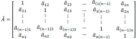 Then, the overall computational procedures of fuzzy synthetic extent (degree) value analysis for factor dimension and factor level are explained. Initially, via pairwise comparison, the fuzzy judgemental (evaluation) matrix