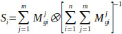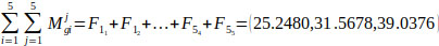 and the fuzzy sum of the whole matrix is calculated using Eq. (10) as follows:
