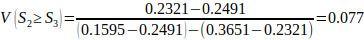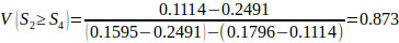 V(S1 ≥ S2) = V(S1 ≥ S4) = V(S1 ≥ S5) = 1.
