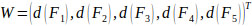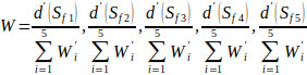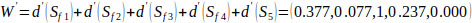 via normalization, the normalized weight vectors with respect to the factors, F1 ~ F5 are given by Eq. (19) as follows: