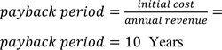 The period required to recover the capital invested in the project is ten years and is calculated from equation (4) [14]