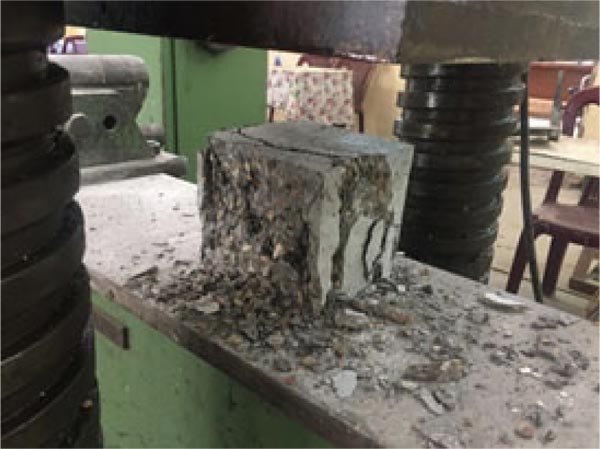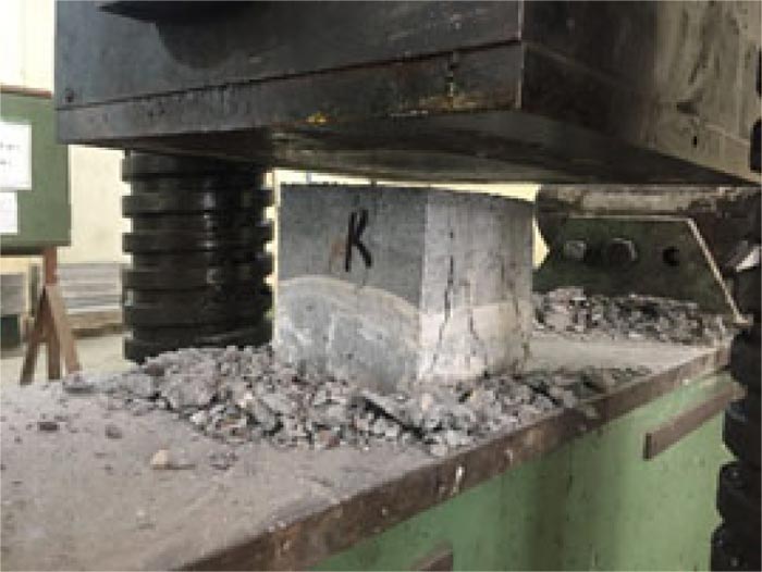 The blends were transferred into 3 cube molds of dimension 150x150x150 mm and 9 prism molds of dimension 10x10x50 mm in 2 or 3 layers for each mix; each one of these layers was shaken through a vibrating table for 10 to 15 seconds until there were no air bubbles in concrete’s surface. All molds were extensively lubricated before forming to gain fair face for the cast and to effortlessly demolding the samples. The sample's face was flattened via hand trawling and marked after that. The samples were cured under laboratory condition temperature (25˚C) in a large water tank for testing.