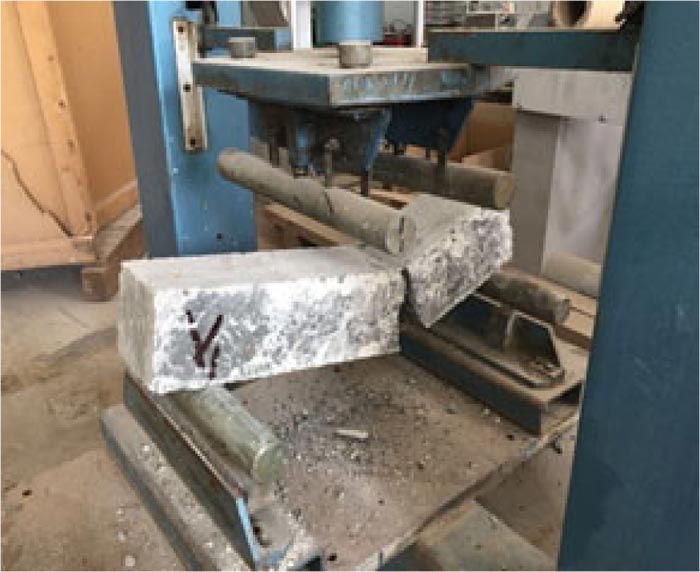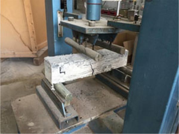 Fig. (17). Failing pattern of Hybrid fibers reinforced concrete under flexural strength test.