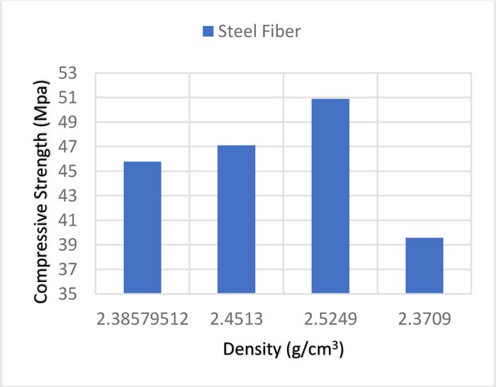 Fig. (8). SFRC density values as a function regarding compressive strength.