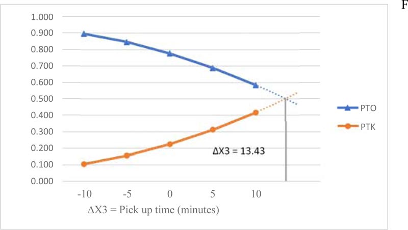 Modal choice probability based on pick up time is an analysis same as the method of modal choice probability based on travel cost. The results of the analysis for modal choice based on pick-up time are shown in Fig. (3).