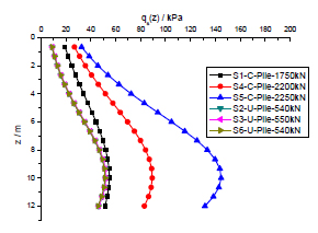 Where, qs(z) is the side resistance strength at any section of the pile body.