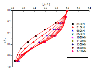 EQ. (4) Determination of normalized load transfer function and side resistance distribution by static load test
