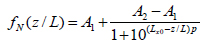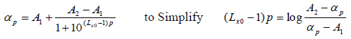 Where, are the fit parameter. A1 is a bottom asymptote, A2 is a top asymptote, Lx0 is center, p is hill slope.