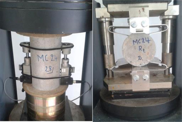 Fig. (6). Compressive strength and splitting tensile strength tests for MC24 specimens.