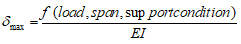 Where f is a function of the load type and value (distributed load or concentrated load), span length and support conditions, Table 2 shows the maximum deflection of different type beams and loadings [15-17].