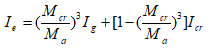 The effective moment of inertia (Ie) is used, which lies between cracking and uncracked section; the moment of inertia can be determined from the following equation [1-6]: