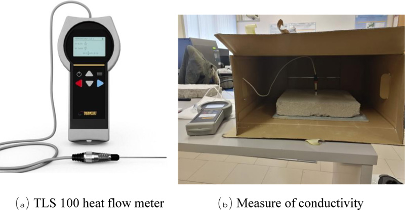 Different methods to measure the thermal conductivity of materials exist. Their accuracy is essential to determine which applications are suitable for, in addition to more practical considerations such as the measurement length and ease of test set up. In this study, the thermal conductivity of the different mixtures was determined through the measurements carried out using two different types of equipment: the heat flow meter NETZSCH HFM 436 Lambda and the Thermal Conductivity Meter Sensor TLS-100 produced by THERMTEST instruments. The two types of equipment were placed in a conditioned laboratory at a temperature of ±23 2◦C and relative humidity of 50.5%, according to the test conditions required by the standard EN 12664:2002.
