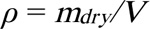 The volumetric mass density ρ indicates the weight per unit volume in dry conditions. It is given by the ratio of the dry weight mdry of the porous solid and the total volume V, including the voids: