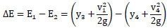 Fig. (2) represents the schematic illustration of the supercritical flow when it collides the screen forming a hydraulic jump. The energy loss between sections 1-1 and 2-2 can be obtained by applying the energy principle with assuming the energy coefficients equal unity.