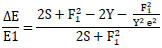 Fig. (9). Relation between F1 and ΔΕ/Ε1 for ls/la = 0.25 at different submergence ratios.
