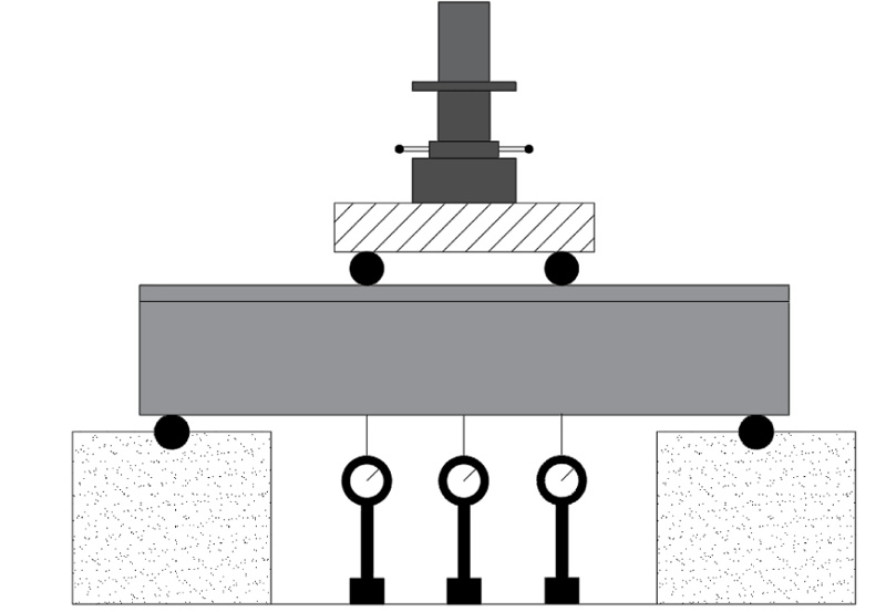 All specimens were considered as simply supported beams tested under Two-point loading test configuration using a 700 kN capacity MFL Prüf-systeme Universal Testing Machine. Fig. (10) shows the test setup. The deflection at the mid span and the applying load locations was measured using three LVDT devices with an accuracy of 0.01 mm. The deflection was measured at 10 kN intervals until failure.