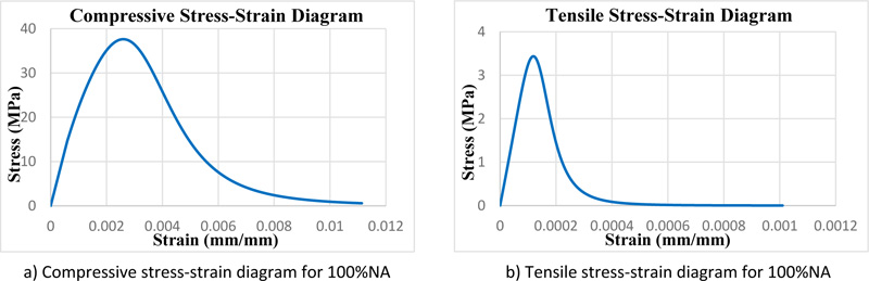 Steel was defined as elastic-plastic material, while Tsai’s equations were used to simulate the compressive and tensile behavior of concrete [32] Fig. (11) illustrates the stress-strain diagrams used for concrete.