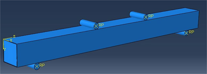 The composite beams were constructed using two solid homogeneous parts - the steel tube and concrete infill. Discrete rigid rods were defined to simulate the supports and to apply the experimental displacement to the beams.