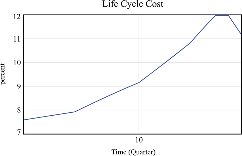 From the base model simulation of LCC, it was indicated that the impact of regulation and sustainability practices on the LCC is not significant, where the LCC is still increasing up to 12% due to the project growth, indicating that the economic aspect of sustainability is not achieved. This result is supported by Hajare and Elwakil, who indicated that current regulation in energy consumption has an insignificant impact on reducing life cycle costs. They reported that active energy conservation will result in the lowest LCC [45]. In summary, the simulation results of the controlling variables in this study showed that the environmental regulation and the current practices of sustainable construction methods should be adjusted in order to reduce energy consumption and maintain economic performance of the projects as business entities effectively.