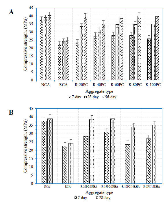 However, cost remains a major issue in the attempt to improve the performance of RCA. One fact is that these aggregate (RCA) materials, which have reached their full life and contributed to an environmental deterioration in terms of used cement leftover quarries of aggregate, now the adoption should be subjected to a cheap and affordable mechanism that could reduce the consumption of cement better. The sustainability issues in its utilization cannot be wished away. This research adopts the proportionate use of pozzolanic cement and RHA to develop the optimum treatment without reducing the mechanical strength and water transport characteristics.