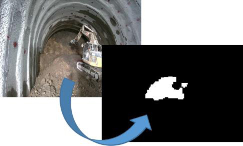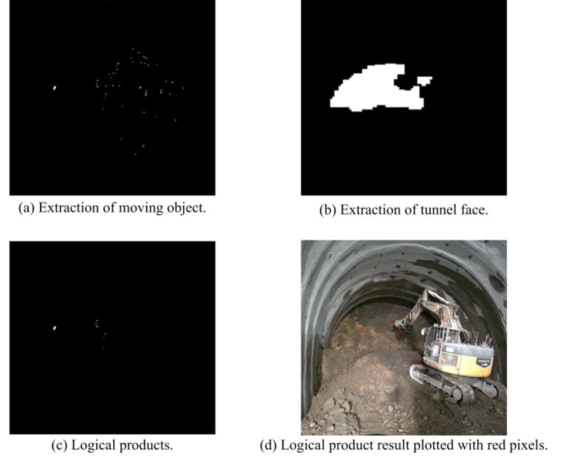 Finally, we computed the logical product of the extracted image of the moving object with the deionized image and the extracted image from the tunnel face. Thus, only moving objects on the tunnel face were extracted. Fig. (4) shows an example of this image. During machine excavation, the moving objects to be extracted on the tunnel face were rockfalls and excavated soil (Fig. 5).