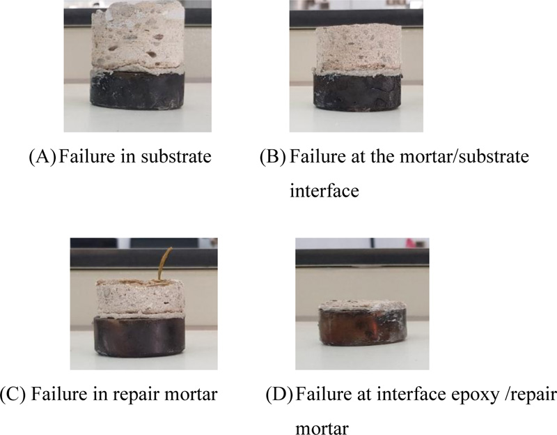 | Bond strength (MPa) | Failure mode | Bond strength (MPa) | Failure mode | Bond strength (MPa) | Failure mode | Bond strength (MPa) | Failure mode | |