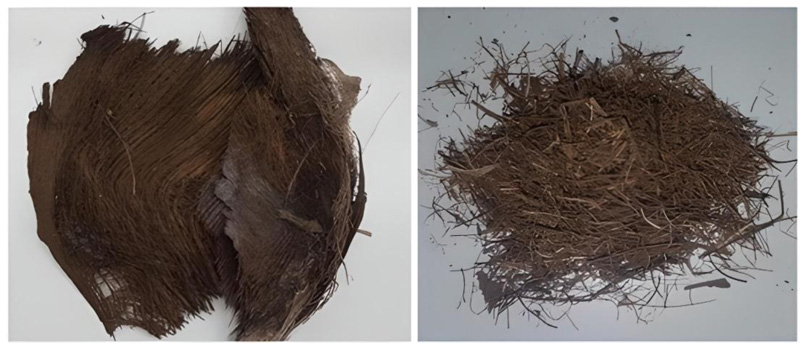 For the preparation of the repair mortar in the laboratory, two types of sands (S) of the nominal maximal size of 3 mm and 5 mm were used with 50%, respectively. The date palm fibers used were plant fibers of cellulose nature (Fig. 2). The chemical composition of sands and the characteristics of natural date palm fibers (DP) are shown in Tables 3 and 4, respectively.