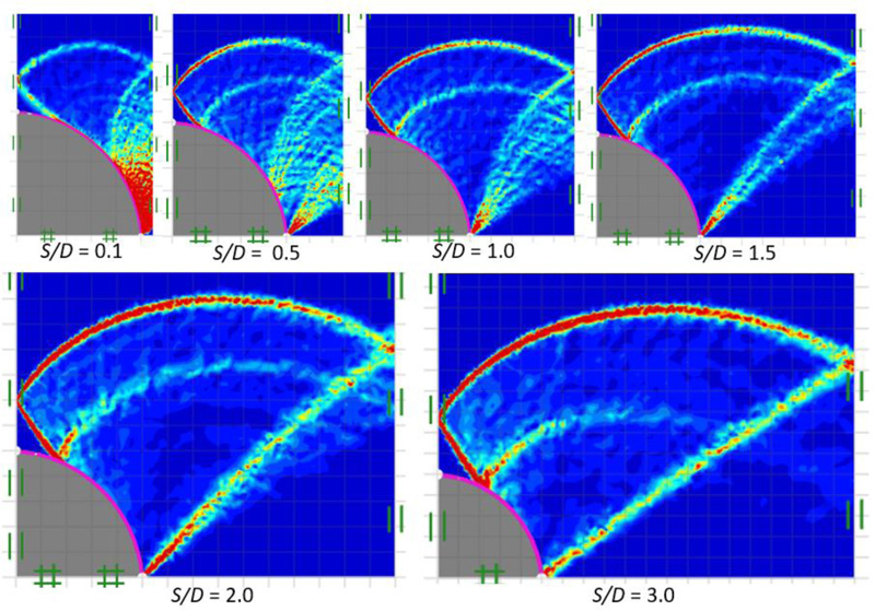 S/D = clear spacing to diameter ratio of the piles