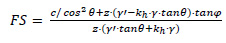 Pseudo-static slope stability analysis is widely used in engineering practice in order to assess the seismic response of slopes. The calculated FS indicates whether the examined slope is stable (i.e., FS ≥ 1) or unstable (i.e., FS < 1) under seismic conditions. The following analytical formula, which was firstly introduced by Morgenstern [43] and further modified by Evans [44] and Haneberg et al. [20] among others, has been used: