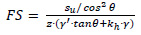 in which, c represents the soil cohesion, while φ and θ denote the friction and slope inclination angles, respectively. Moreover, z represents the depth of the seabed, and γ´ denotes the buoyant unit weight of the soil, which is equal to