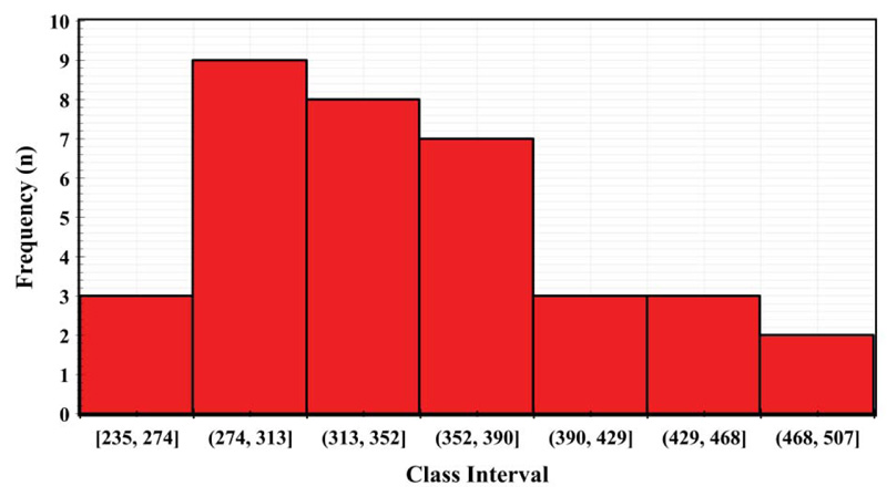 Fig. (4). Distribution data of Vs30 in the study area (modified from Mase, 2022).