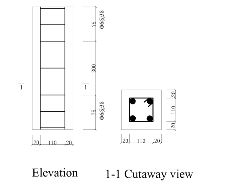 | C30-2.01%-HRB500 | C30 | 150mm×150mm×450mm | 2.01 | 4Φ12 | 45.9 | 35.0 | Φ6@38 |