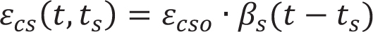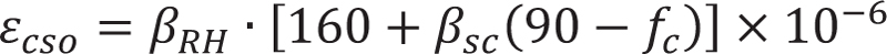 In the formula, the value of βsc is determined by the type of cement; βRH is determined by the relative humidity of the environment; β(t-ts) is the coefficient of shrinkage strain change. t is the age of concrete; ts is the age when the concrete begins to shrink. ƒs is the compressive strength of concrete; αe = Es/Ec; ρ is the ratio of reinforcement.