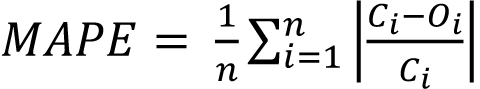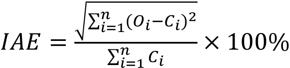 Where Oi is the actual value of the contraction strain of the reinforced concrete specimen, Oi is the predicted value of the contraction strain of the reinforced concrete specimen, Ōs is the average value of the actual value of the contraction strain of the reinforced concrete specimen, C̄i is the average value of the predicted value of the contraction strain of the reinforced concrete specimen, and n is the number of data points.