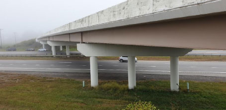 A site visit was conducted on October 5, 2020, to assess various aspects of the FAI-33-1309 bridge. The inspection covered embankment slopes, roadway settlement at abutments, the condition of the concrete deck, and relative substructure orientation. Fortunately, no signs of settlements were detected, and the softness of the soils around the piers was attributed to drainage issues. Some PVC caps were missing or damaged, likely due to vandalism. The existing spread footing design for bridge foundations was functioning as intended. Refer to Fig. (3) for a visual representation of the FAI-33-1390 bridge.