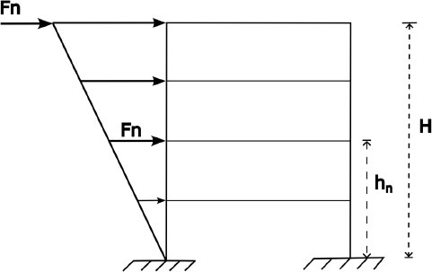 F: total lateral seismic force; Fn: horizontal design force applied at level n; Wn:total load at level n; hn:height of the floor considered from the ground; T:fundamental period of the structure; Ft: additive force at the top storey.