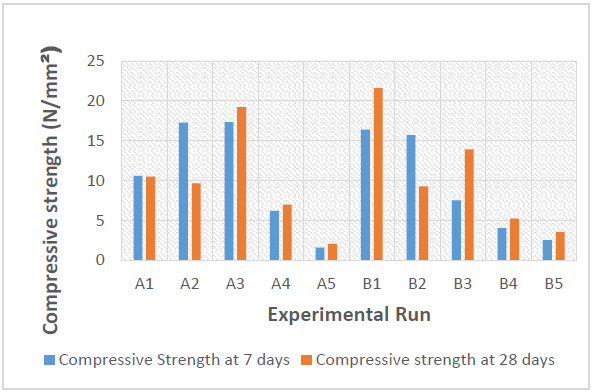 Work carried out using cement mortar in which a portion of the cement was replaced with wood ash is reviewed from various aspects, such as physical, chemical, strength, and durability of the mortar. Water absorption and compression tests were conducted in an environment simulating cement mortar [24]. The results showed that when 40 mm cubes were substituted with 0% wood waste ash, their fc was 24.07 N/mm2 after 7 days of curing and 28.13 N/mm2 after 28 days of curing; when 10% of wood waste ash was substituted, fc was 17.28 N/mm2 after 7 days of curing and 20.67 after 28 days of curing. The results showed that the water-absorbing capacity of the mortar dropped as the percentage of wood ash increased and that the fc of the mortar reduced by 26.52% at a replacement of 10% compared to the control mortar.