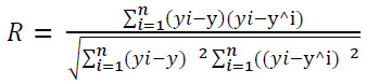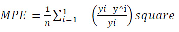 Evaluation performance metrics were used to evaluate the performance of the mathematical model: mean squared error (MSE), root mean squared error (RMSE), mean absolute error (MAE), mean percentage error (MPE)%, correlation coefficient (R), and Coefficient of Determination (R2) [49]. Equations (3-8) show mathematical representations of these metrics [50].