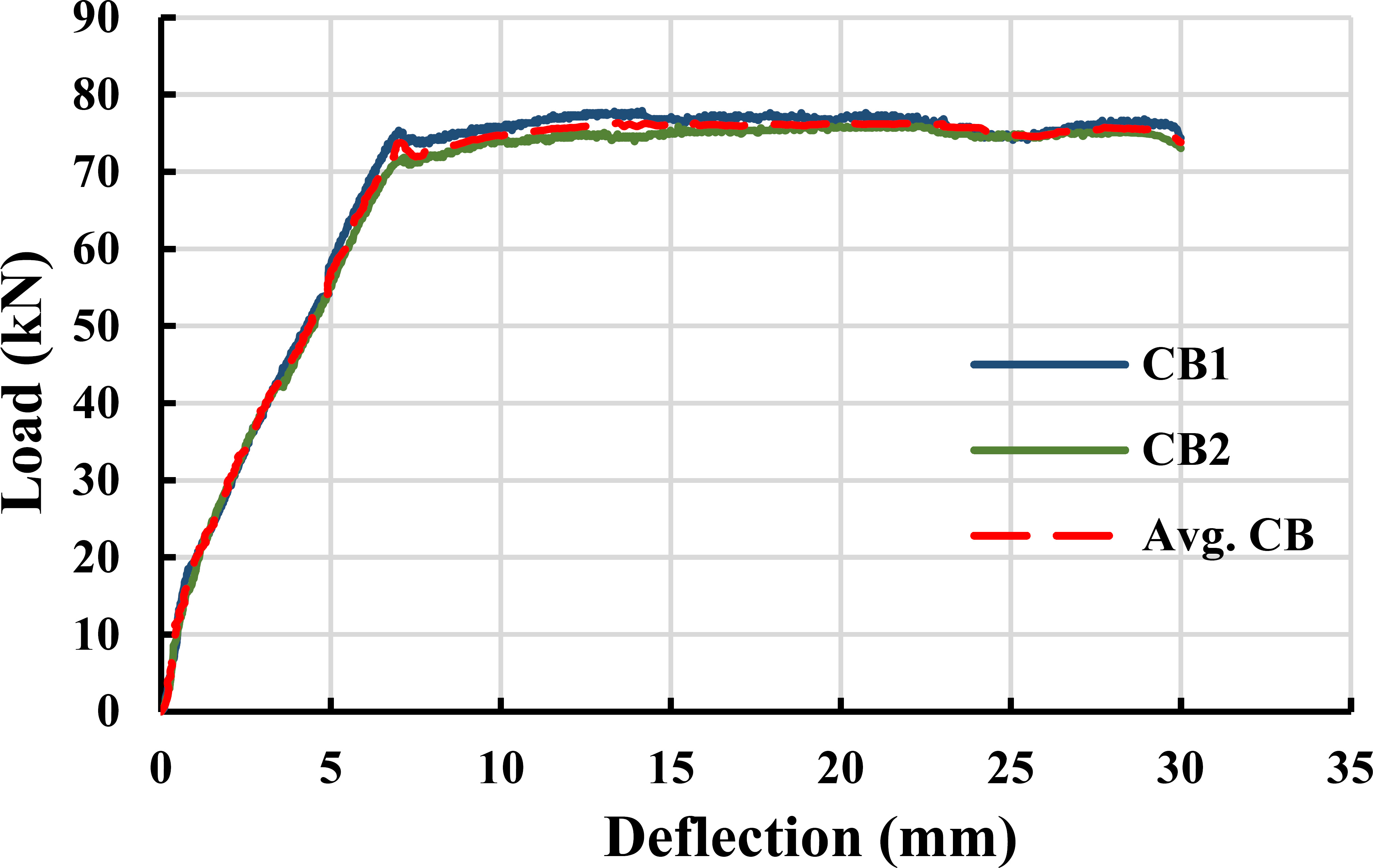 Mid-span load deflection curve for control beams.