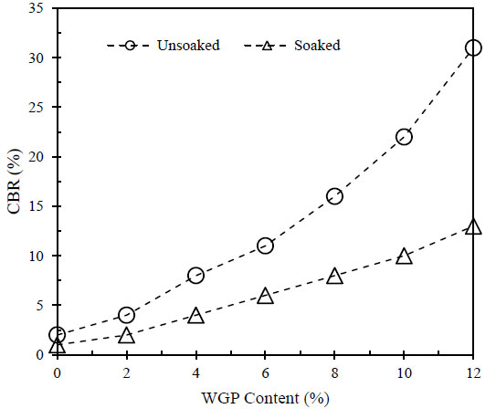 3.4. Effects of WGP on the California Bearing Ratio Of Soil-WGP Mixtures